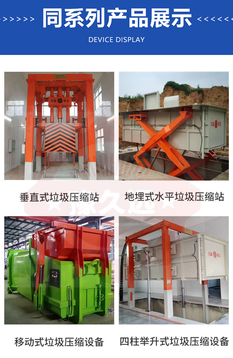 水平式生活垃圾压缩中转设备是将垃圾的卸(出)料、压缩、储存集合在一起,整体落于地下,利用地下空间将垃圾密闭在箱体内,地面上无垃圾外露现象,压缩垃圾产生的污水经排污管道直接流入污水井内,然后由污水泵排到城市污水管网,彻底解决了垃圾在收集、储存、装运过程中的污染环境、作业效率低等问题。